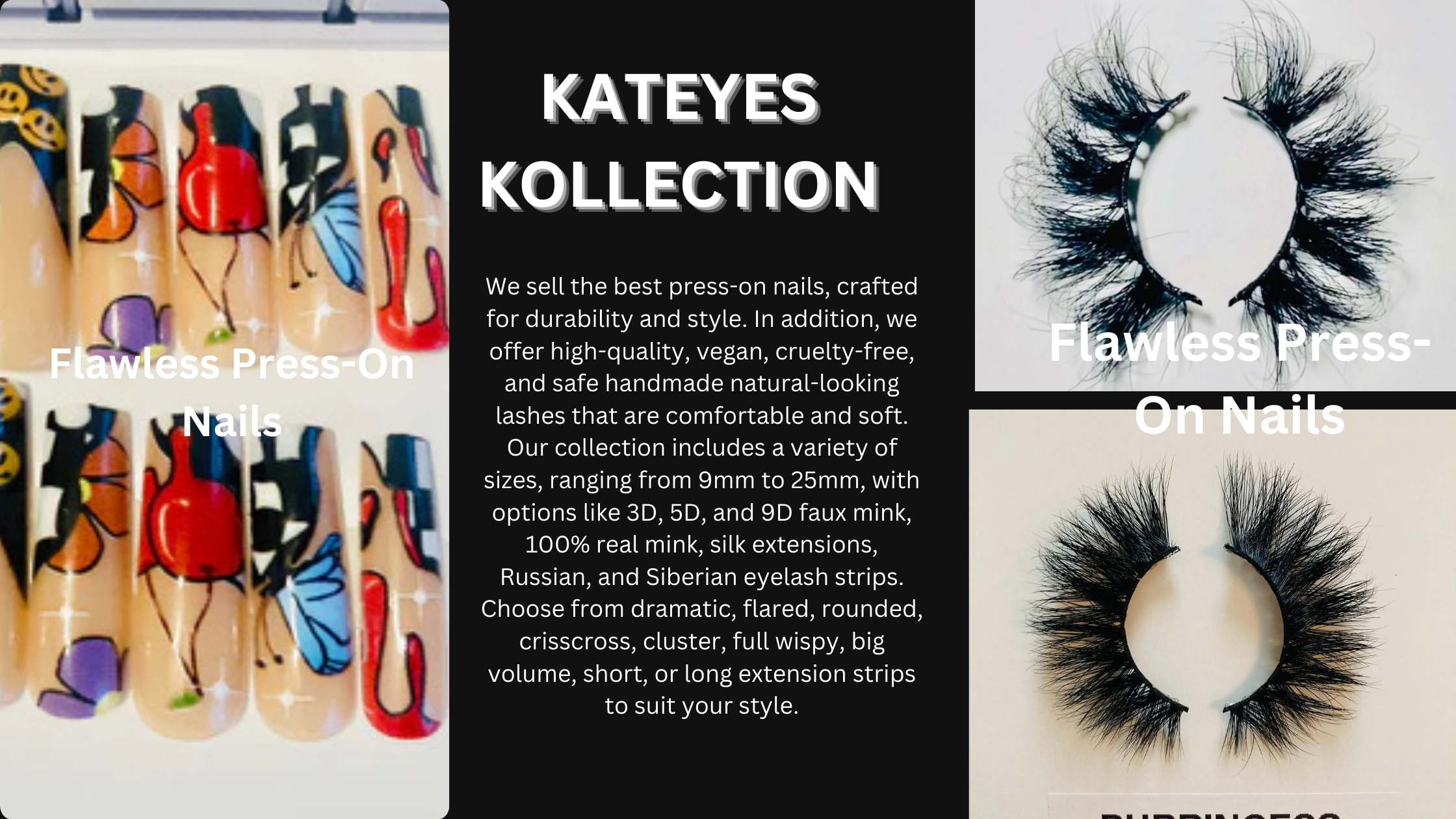 Hello Everyone My Name Is Kyria Bennett aka Kateyes. I Am The CEO Of Kateyes Kollection Eyelash Extensions Our Main Focus Is To Make Sure That Every Client Is Very Satisfied, After Every Order And That Every Client is Appealing To The Eye, Our High Quality Affordable Eyelash Strips Will Have U Misleading. Looking like The Leading Lady Of The Day Or Night. Our Lashes Comes In Various Sizes, From 9mm To 25mm, From 3D, 5D to 9D Dramatic, Flared, Rounded, Crisscross, Cluster, Wispy, Yes All Styles Are Available.